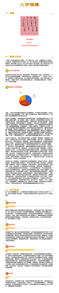 本服務經由八字,依照您的性格分析出您的管理方式,讓你更深入的了解自己,進而改變自己。
